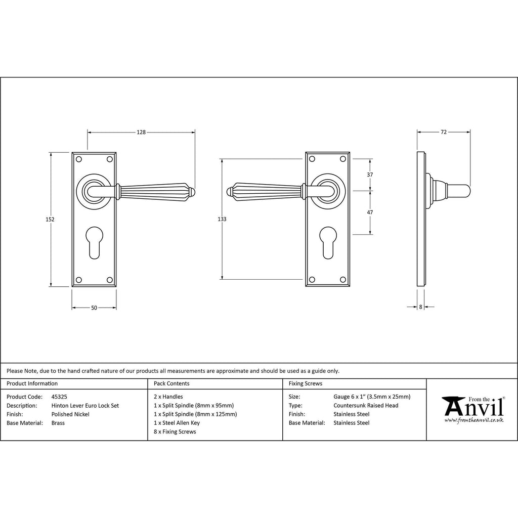 Polished Nickel Hinton Lever Euro Lock Set | From The Anvil