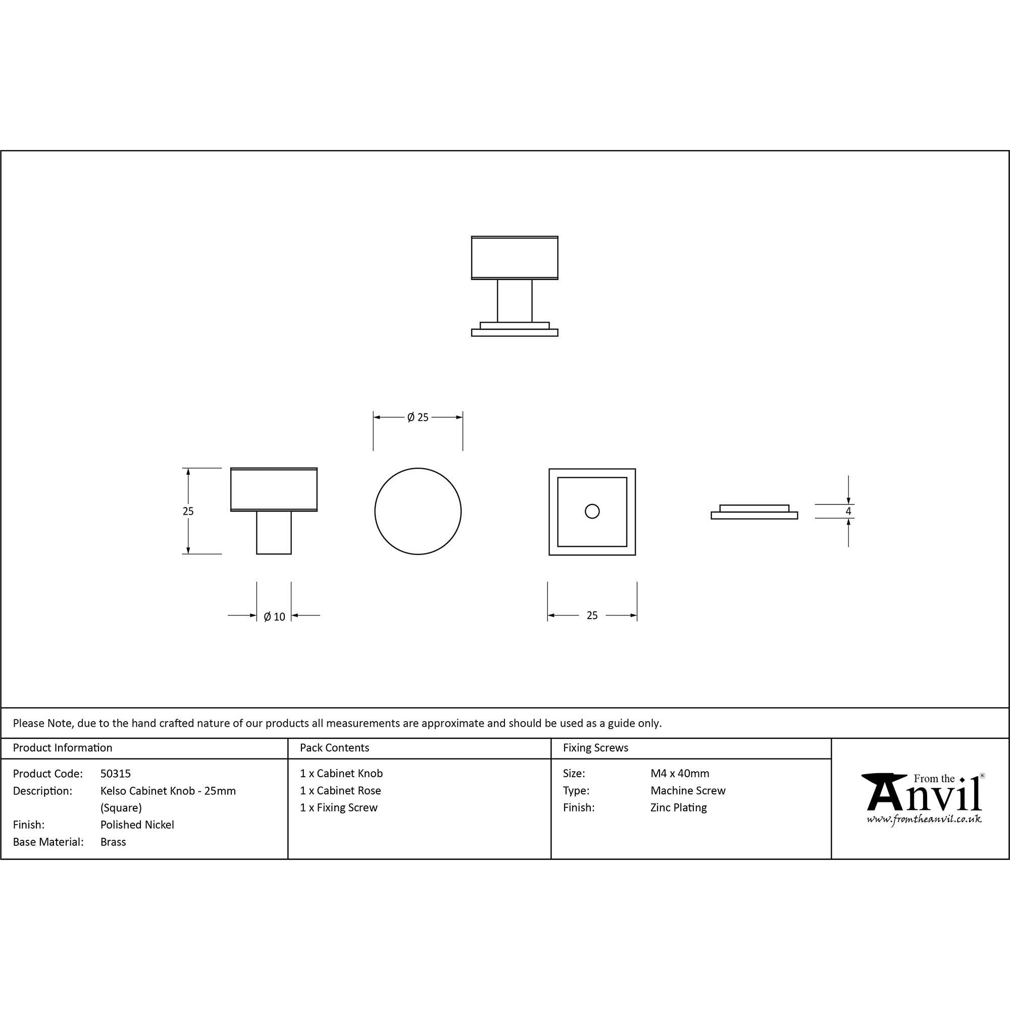 Polished Nickel Kelso Cabinet Knob - 25mm (Square) | From The Anvil