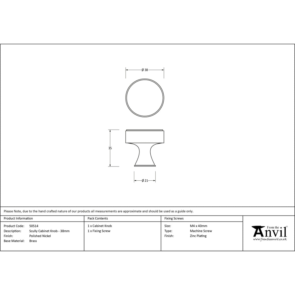Polished Nickel Scully Cabinet Knob - 38mm | From The Anvil