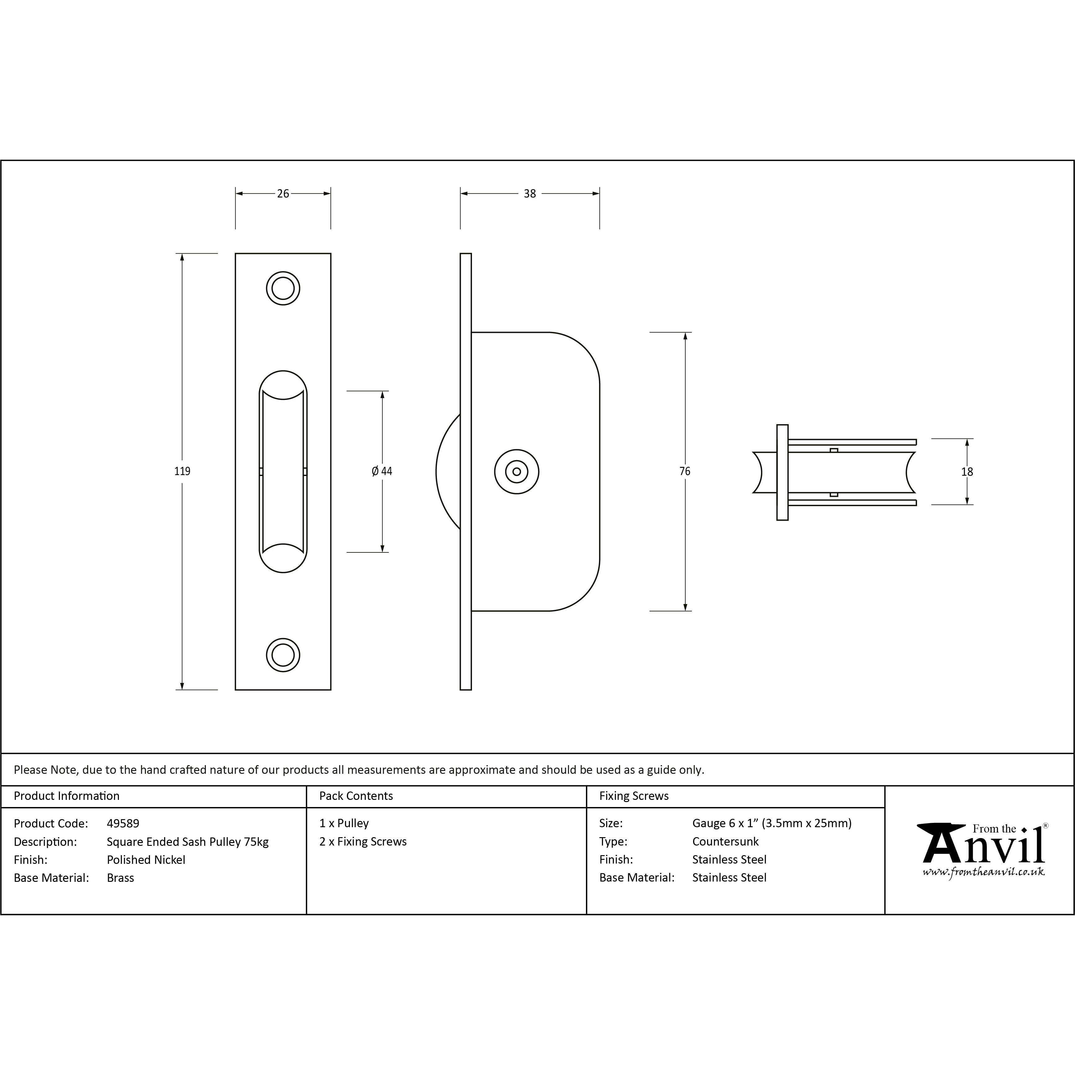 Polished Nickel Square Ended Sash Pulley 75kg | From The Anvil