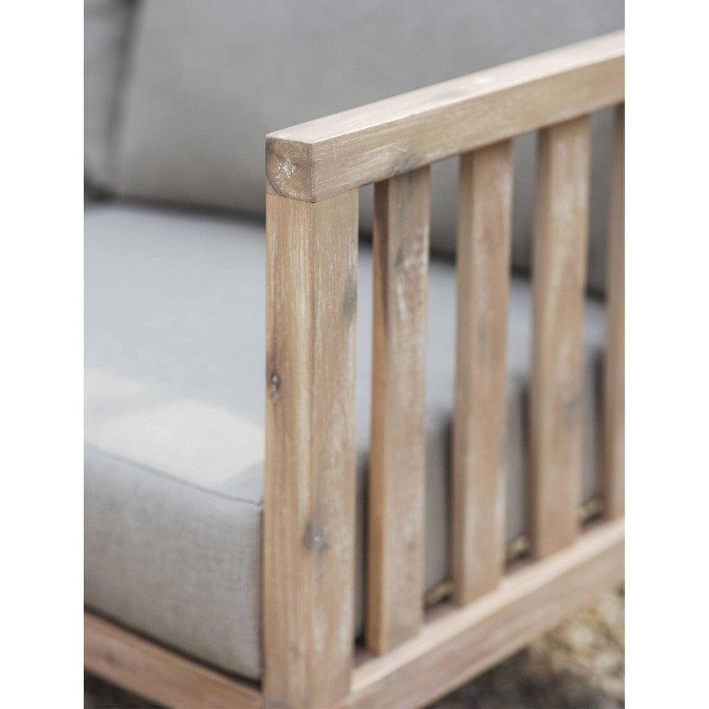 Whitewash acacia wood complemented with soft grey cushions makes the Porthallow the most traditional of our outdoor furniture collections. This 2-seater is perfect for smaller patios and pathways or why not style two together with the rectangular coffee table and create a cosy outdoor retreat.