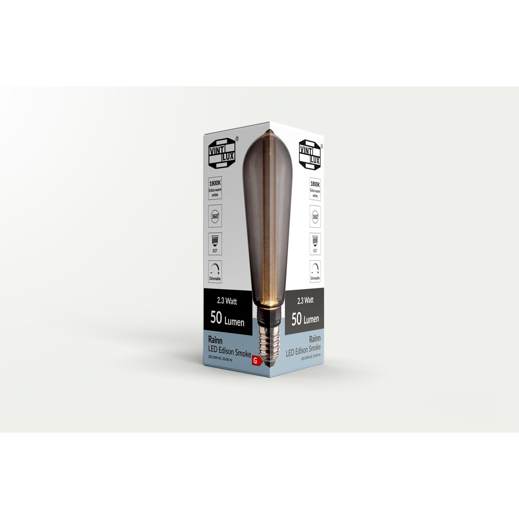 Vintlux E27 Dimmable LED Filament Lamp 2.3W ST60 50lm 1800K Rainn Edison Smoke