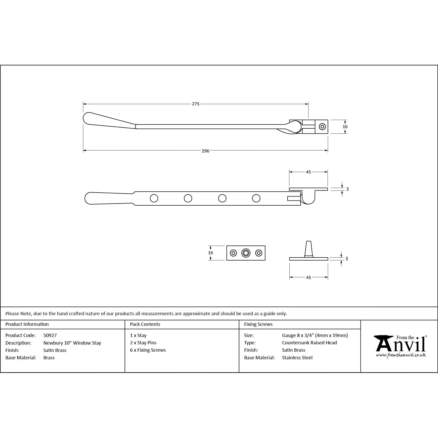 Satin Brass 10" Newbury Stay | From The Anvil