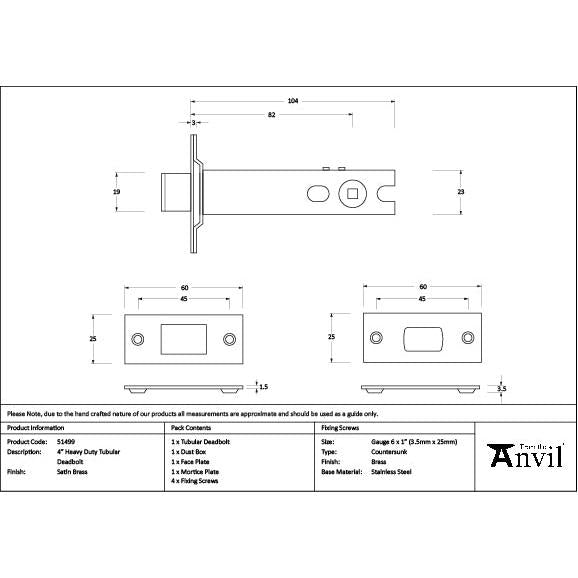 Satin Brass 4" Heavy Duty Tubular Deadbolt