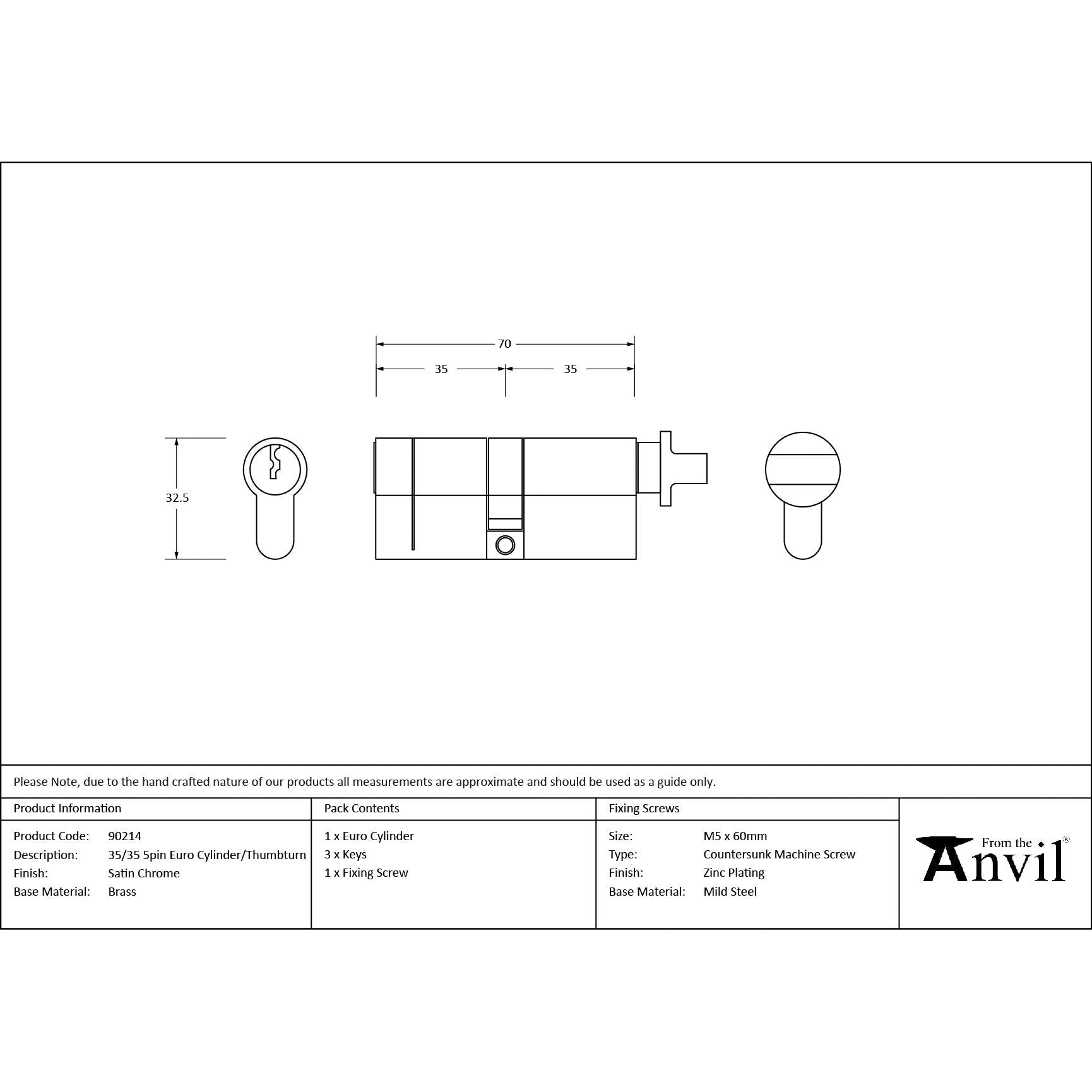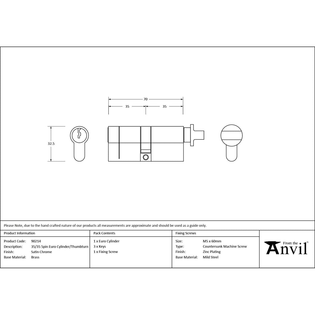 Satin Chrome 35/35 Euro Cylinder/Thumbturn | From The Anvil