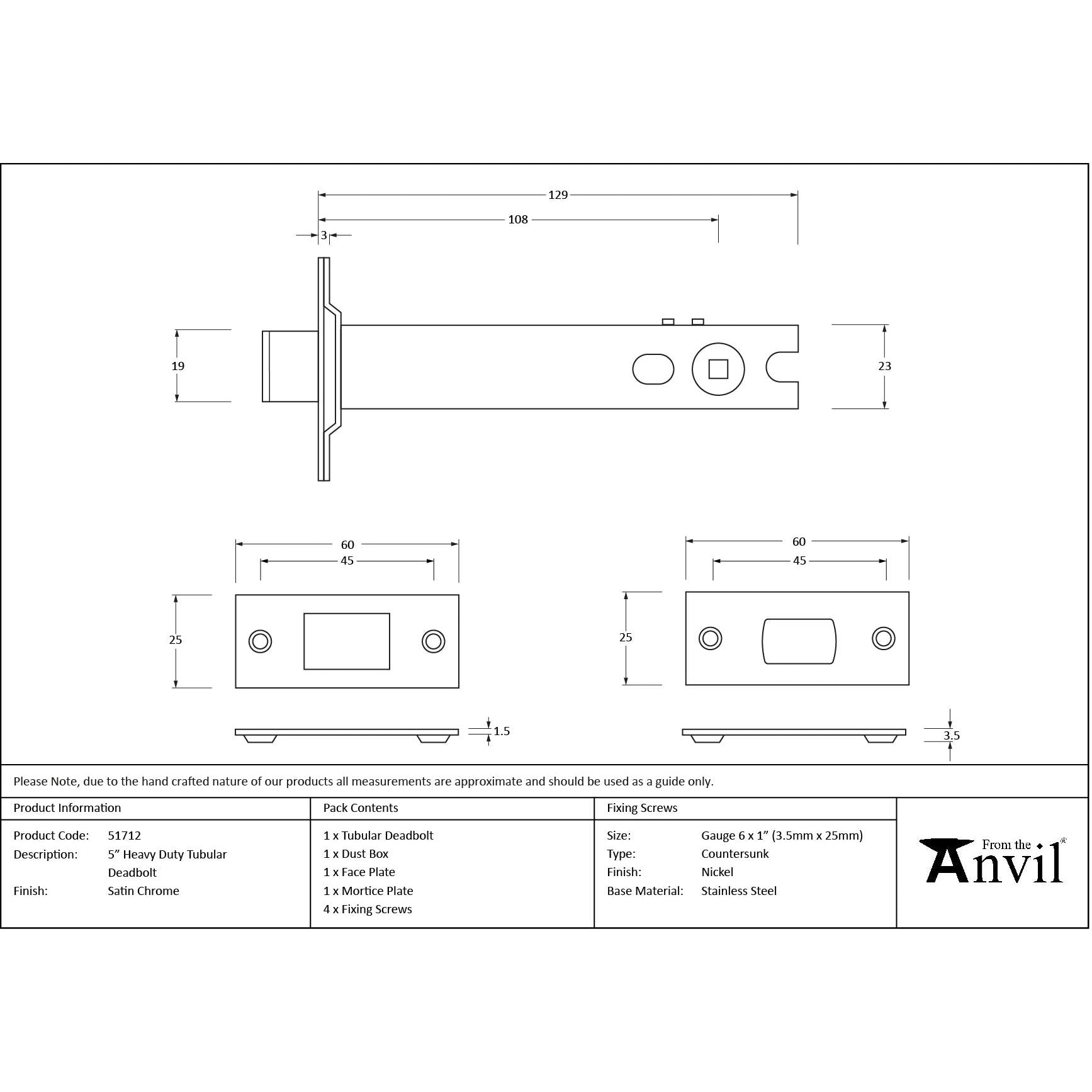 This heavy duty tubular deadbolt is suitable for use with any of our bathroom thumbturns and 5mm spindle.