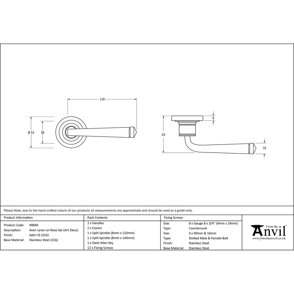 Satin Marine SS (316) Avon Round Lever on Rose Set (Art Deco) | From The Anvil