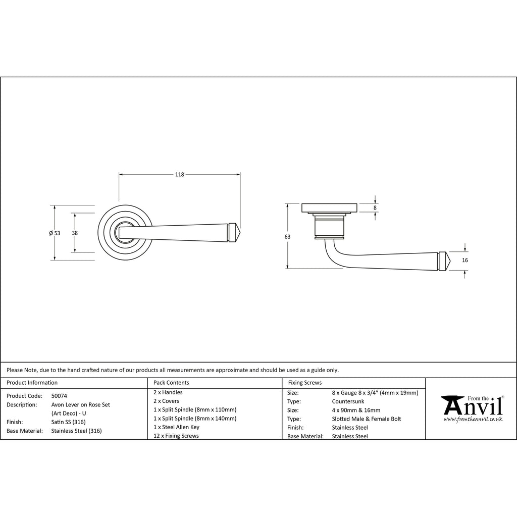 Satin Marine SS (316) Avon Round Lever on Rose Set (Art Deco) - Unsprung | From The Anvil