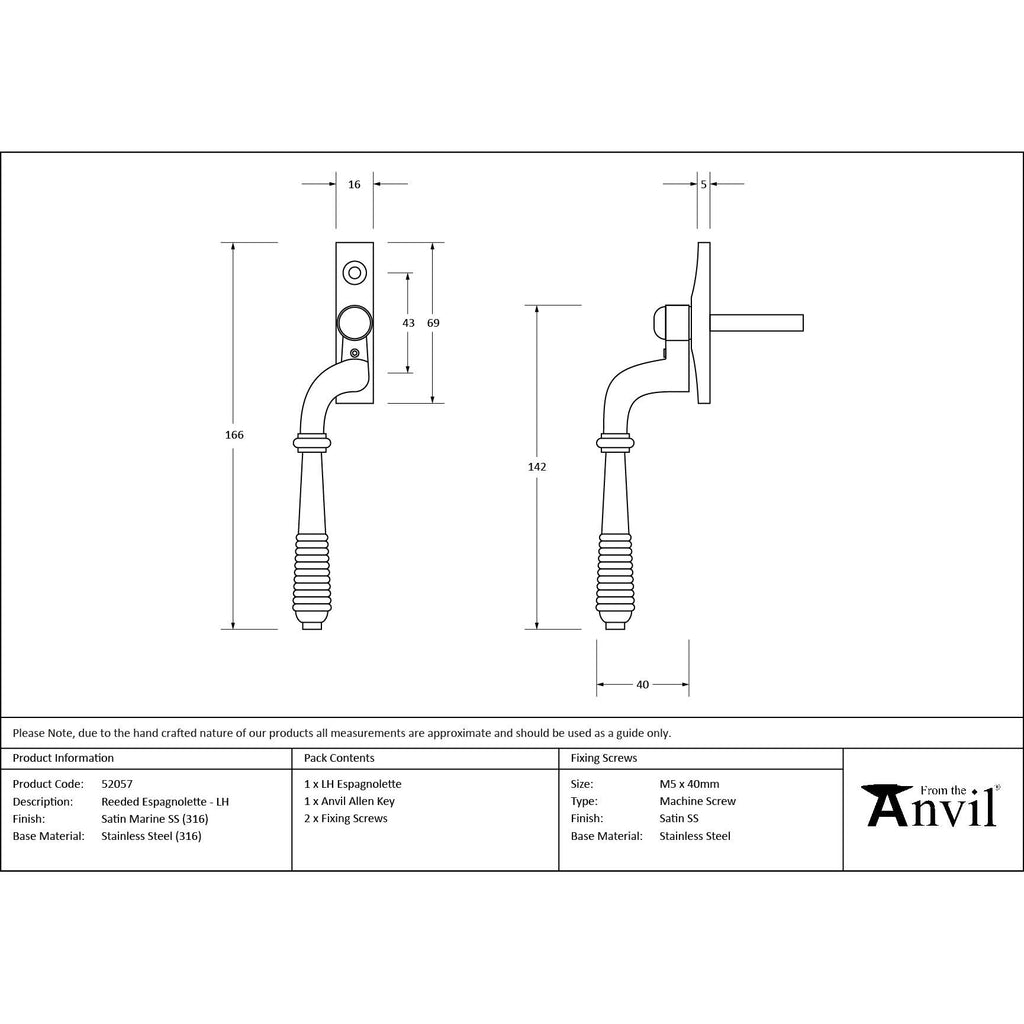 Satin Marine SS (316) Reeded Espag - LH