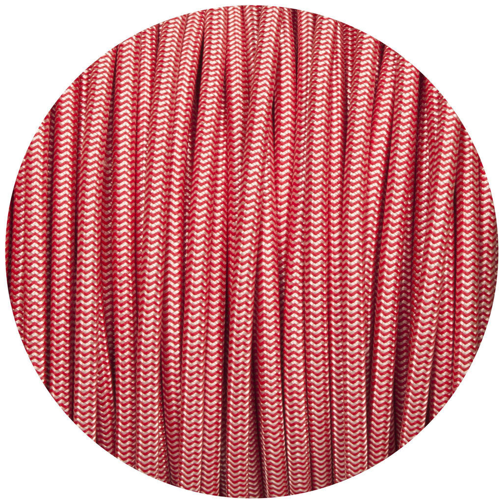 Silver & Red Round Fabric Braided Cable