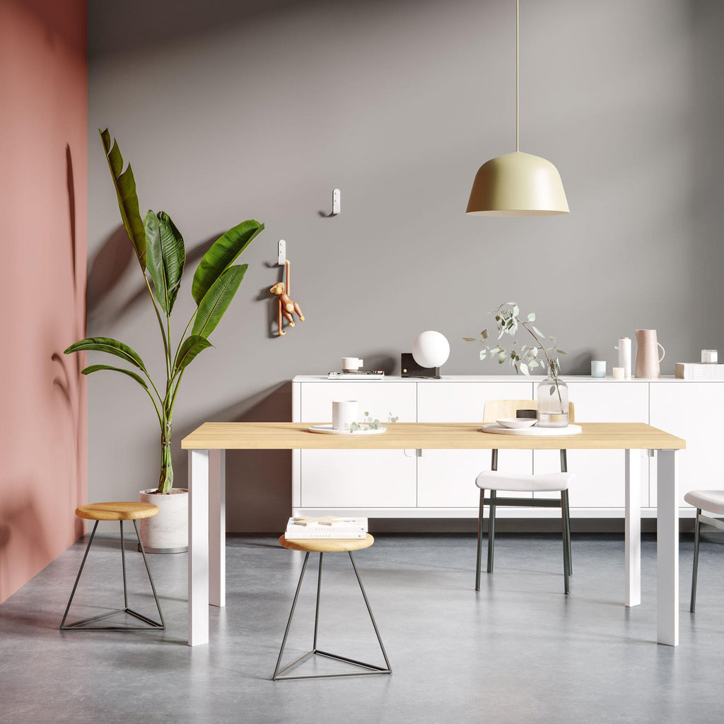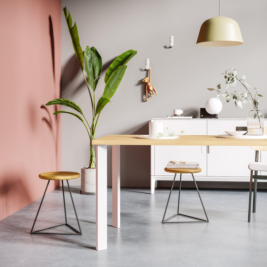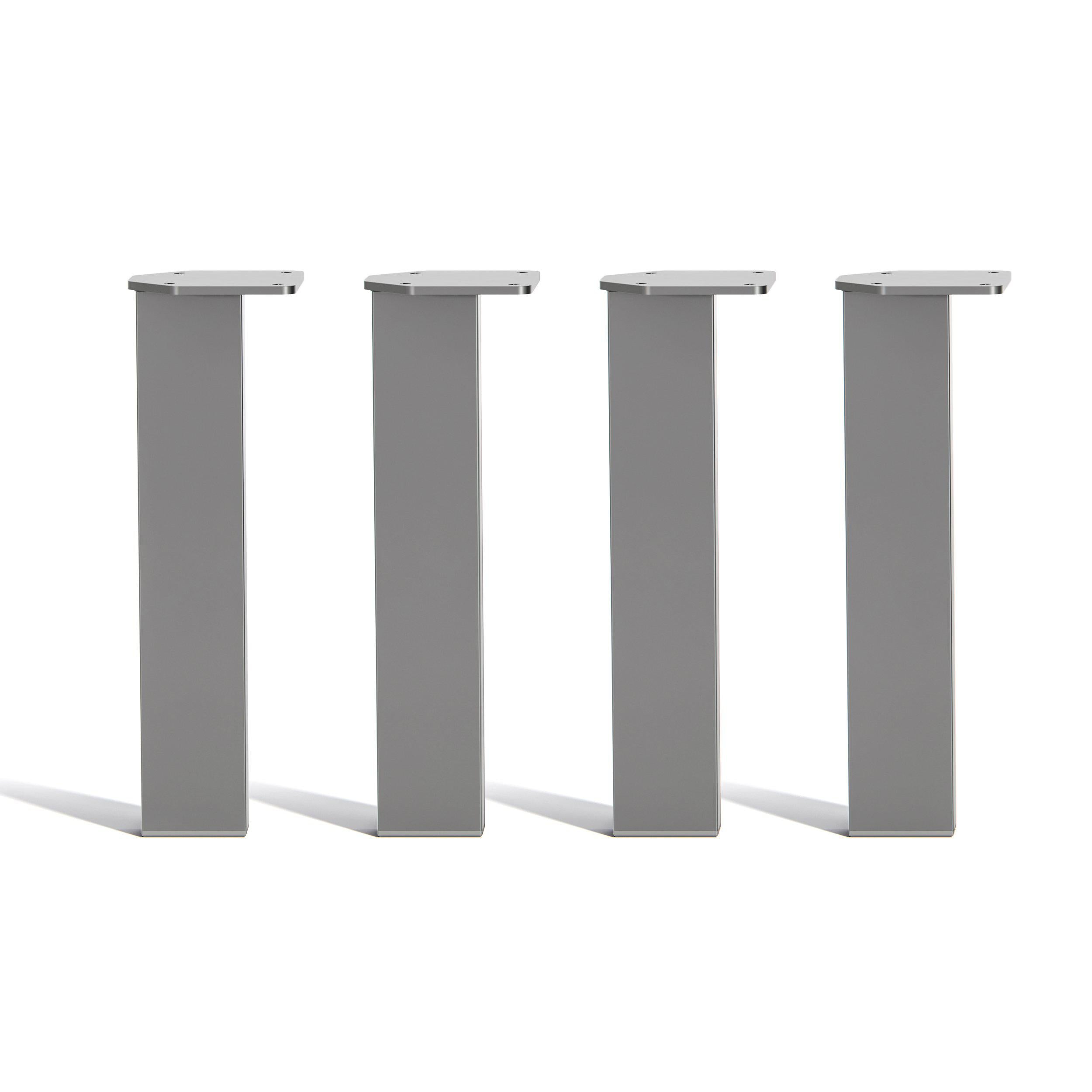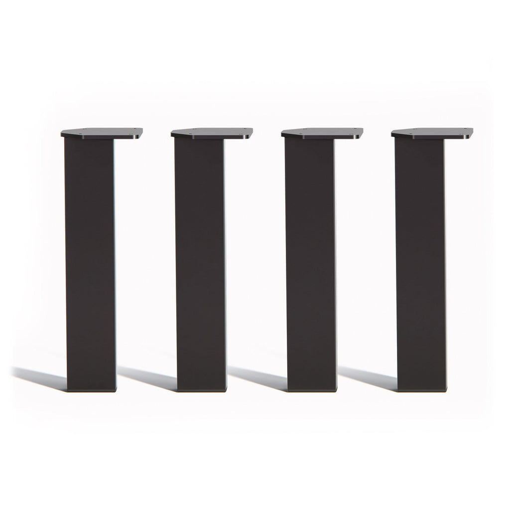 A set of four metal table legs inspired by simple Scandinavian design in a modern powder coated finish. Bold playful forms create a leg well suited to contemporary furniture, pair them with wide stave wooden boards for a classic look or pale ply table tops for a functional, Scandi style.
