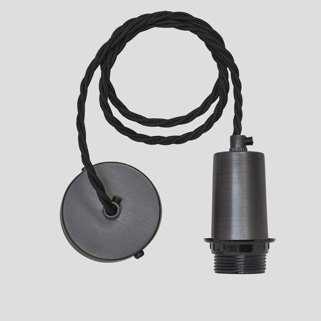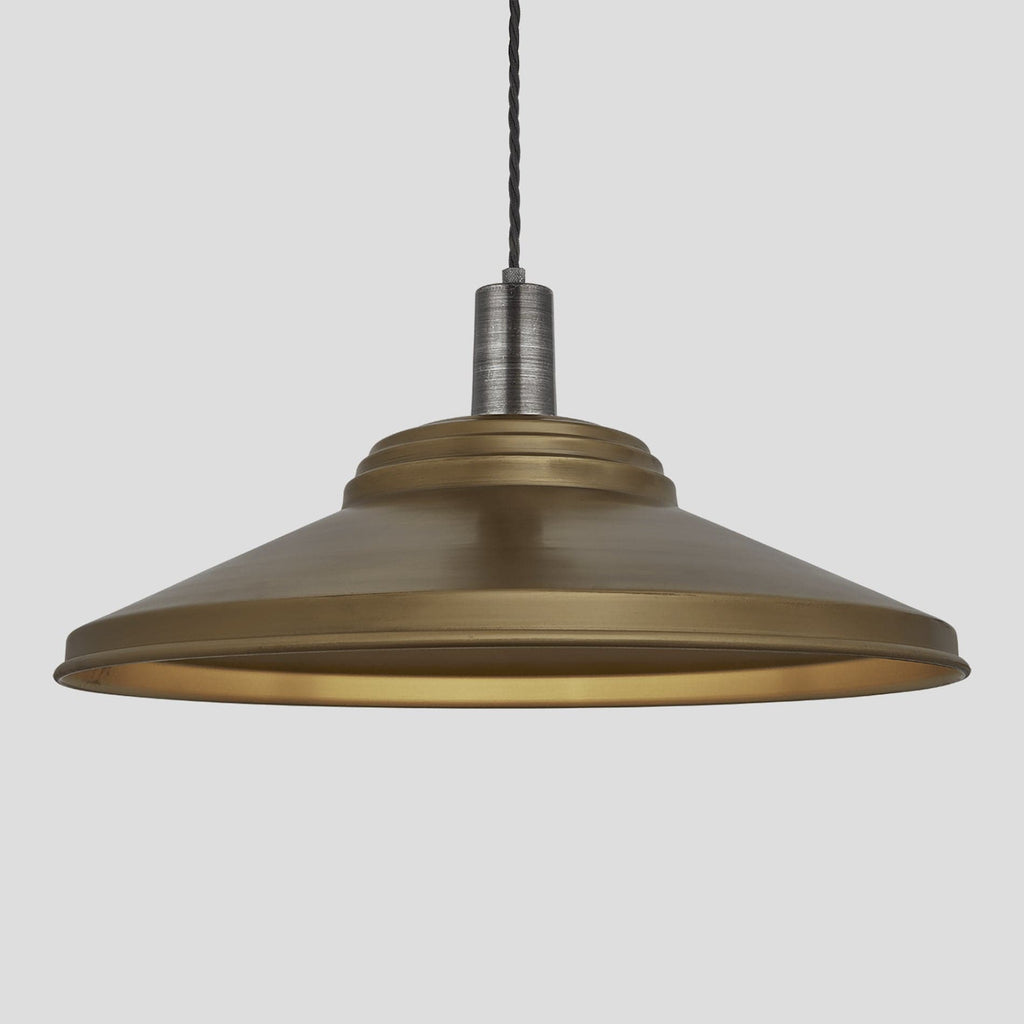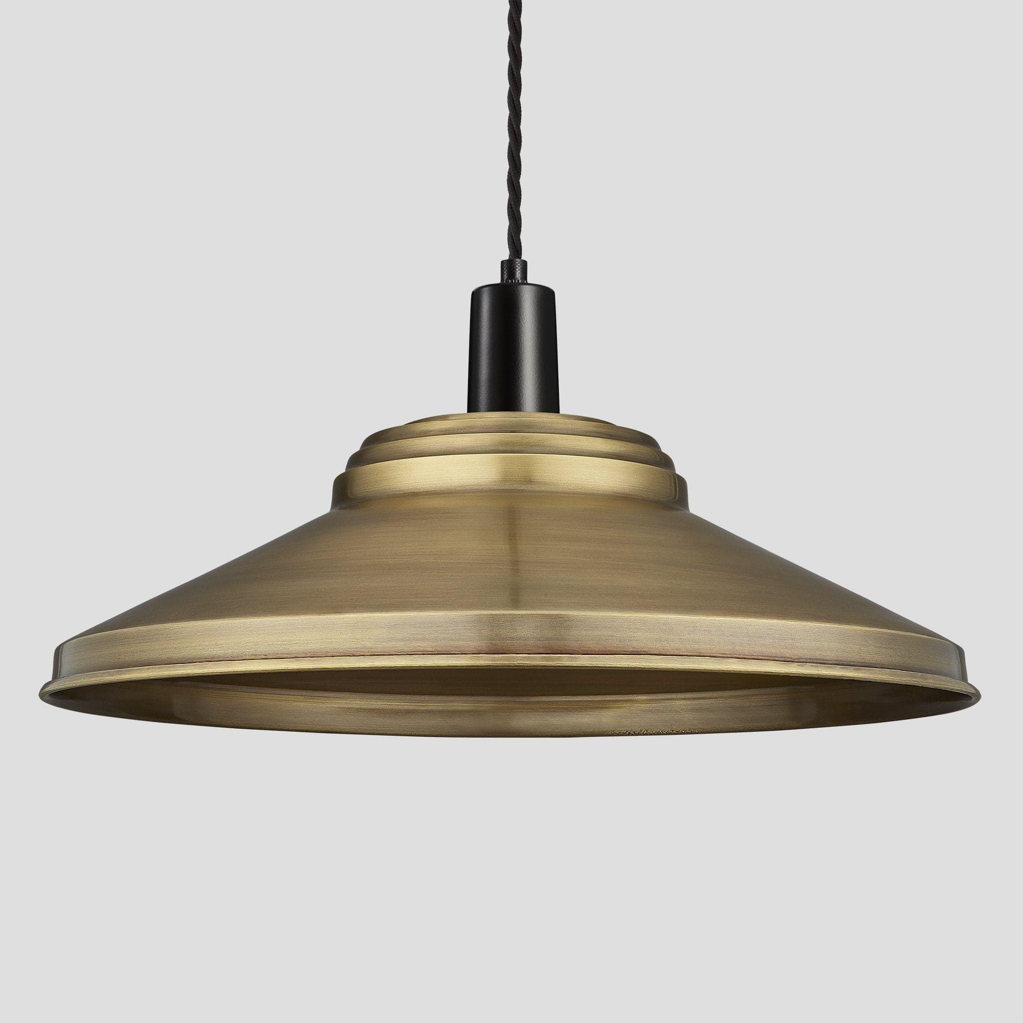 Our Sleek Step 18 Inch Pendant is also available in Pewter. The beautiful Light is available in a slightly smaller variation of 16 Inch Pendant in Brass, Pewter and Light Pewter and can be used together for the ultimate Lighting combination, also with a 1 M Black Twisted Fabric Flex. Perfect for any space while providing that modern industrial look.