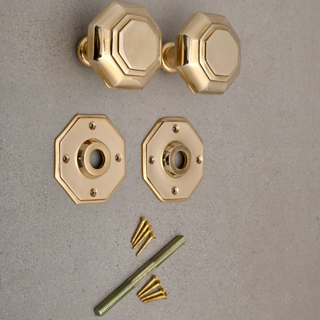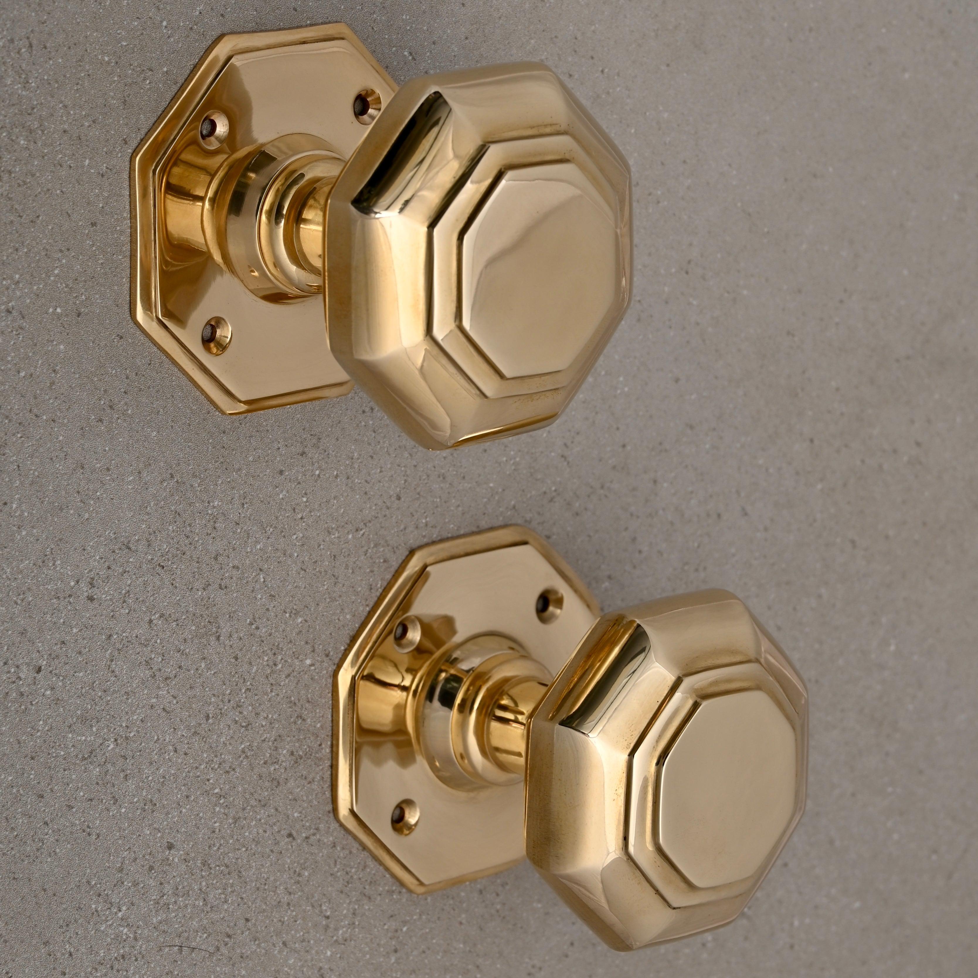 • The Solid Brass Octagonal Door Knob cast in solid brass with a backplate will add a touch of luxury to any door.