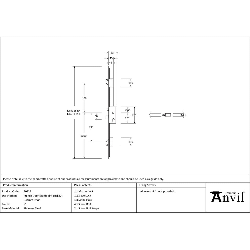 SS French Door Multipoint Lock Kit 44mm Door | From The Anvil