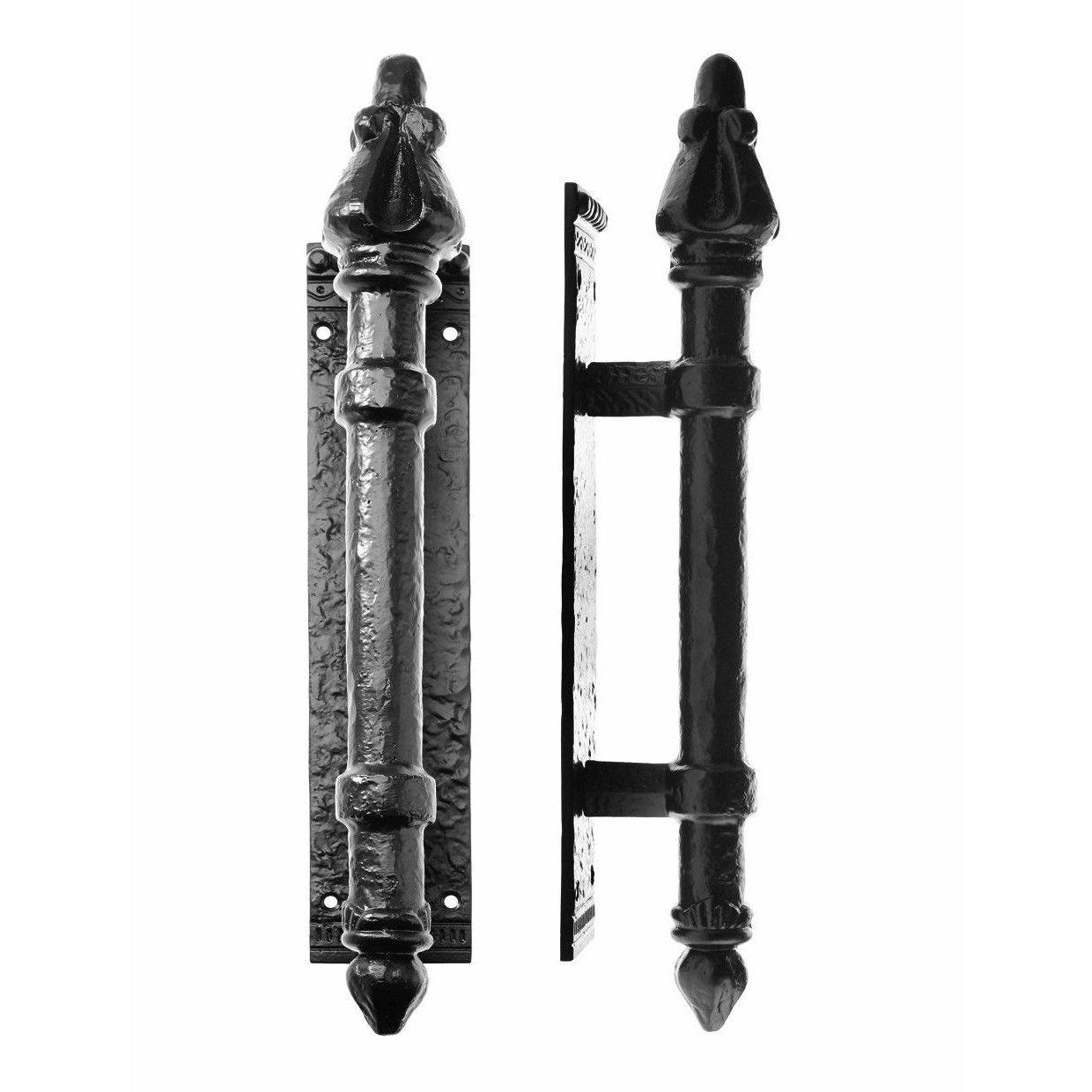 Black antique pull handle in cast iron. Suitable for a heavy door.