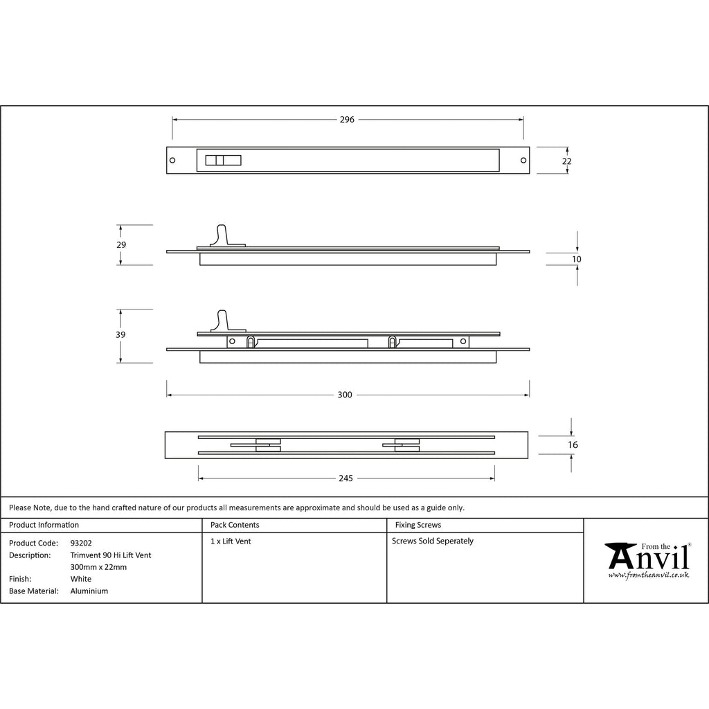 White Trimvent 90 Hi Lift Vent 300mm x 22mm | From The Anvil